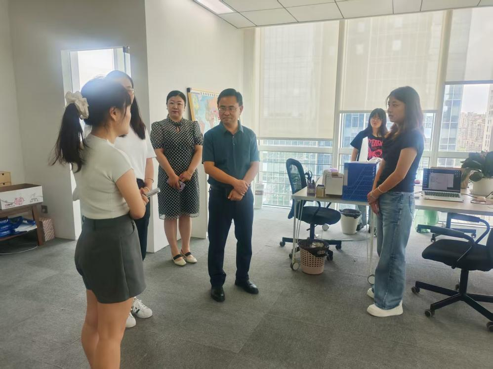 考察过程中,黄贵平书记走访了学生实习岗位,关切询问工作适应情况和生活需求,特别了解学生在企业涉外事务中的参与成效。赵智利老师结合实习内容,指导学生将课堂所学融入实际业务场景。