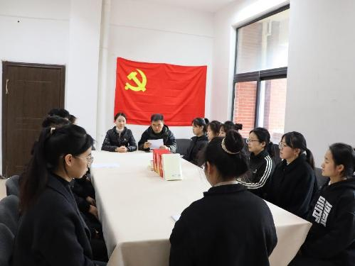 副科级专职组织员、本科生生第二党支部书记黄娜,本科生第一党支部书记刘鹏程,本科生第三党支部书记陈欢,学生党员代表邰颖以及11名新党员参加。