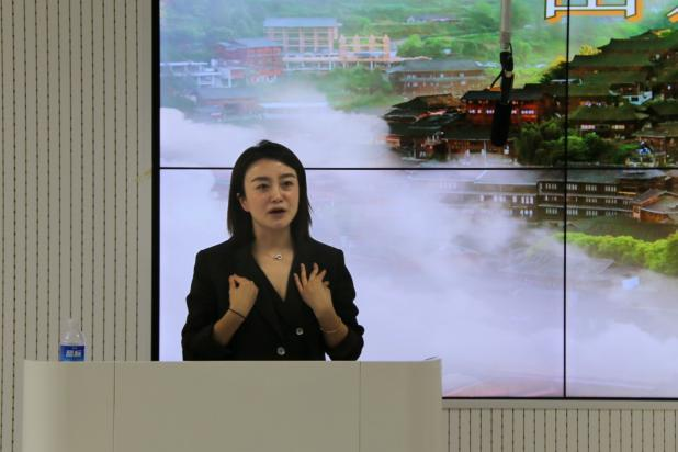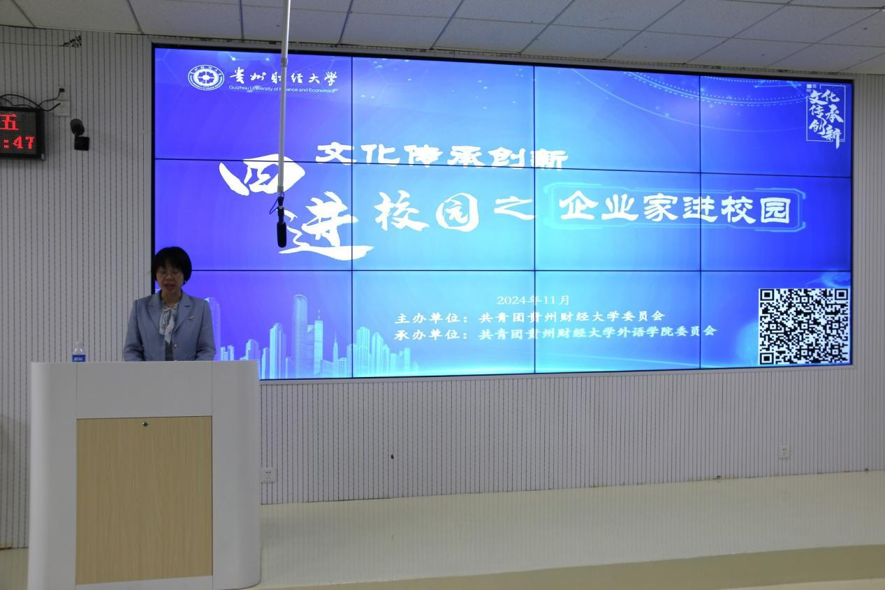 讲座上,何云女士分享了自己的成长历程,在竞争激励的商海中,如何通过自己务实的工作作风,敏锐的商业嗅觉,顽强的拼搏精神,从一名一线员工一步步成长为贵州苗姑娘控股集团总经理,展现了青年企业家脚踏实地、勇于挑战、敢于创新的宝贵品质。同时,何云女士介绍了集团从传统企业转型为跨境电商平台及直营店的艰辛过程,强调创新和跨界融合的关键作用,以及推动“黔货出山、出海”为乡村振兴做出的贡献。接着与同学们探讨了企业和个人如何把握贵州文旅新机遇,共创多彩发展新未来,鼓励同学们勇于探索,敢于创新,将个人职业生涯规划融入贵州发展大局中,融入中华民族伟大复兴中。最后,何云女士与同学们互动交流,答疑解惑,为同学们未来的发展提供了可供参考的宝贵经验与建议。