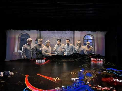 党员们走进《红飘带·伟大征程》演艺厅中,依次参观了“无名英雄”、“血火洗礼”、“伟大转折”、“砥砺征途”、“胜利丰碑”和“新时代新长征”等六个篇章的剧目。在数字化全景展示中沉浸式体验了红军长征的真实场景,仿佛亲身经历了“遵义会议”“四渡赤水”等经典革命历史事件,身临其境地感受了先辈们的英勇无畏和攻坚克难的壮烈精神。