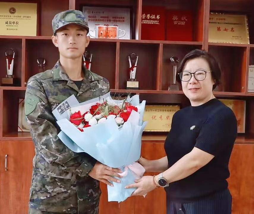 9月12日上午,为即将踏上军旅征程的2020级翻译专业学生谢永超送行,nba赔率