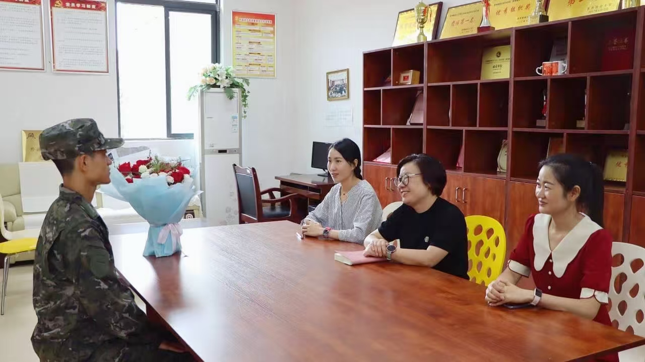 申恒在欢送仪式上鼓励谢永超同学,即将面临新环境、面对新挑战,要继续加强学习,磨炼坚韧意志品质,为实现富国强军伟业贡献力量。黄娜希望谢永超同学到部队后,继续发挥党员先锋模范作用,一名党员一面旗帜,要严守纪律,勤学苦练,勇担责任,锤炼过硬的军人品格。