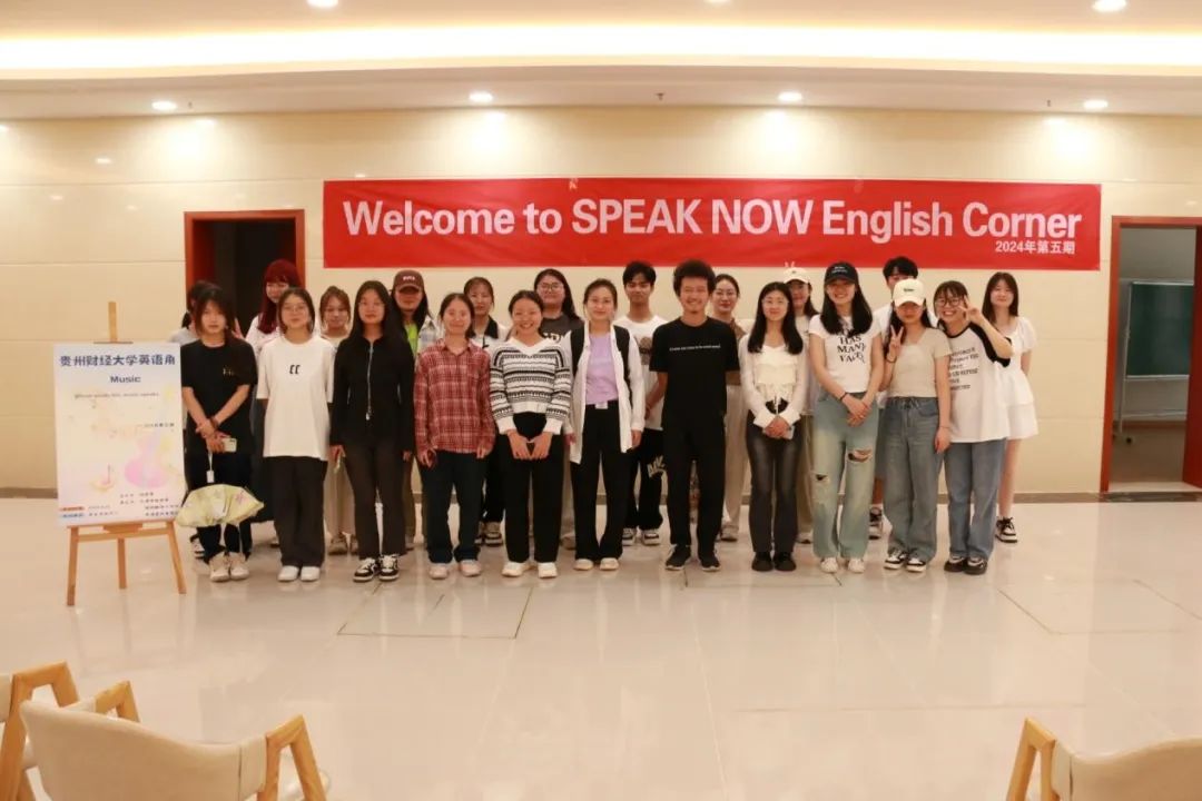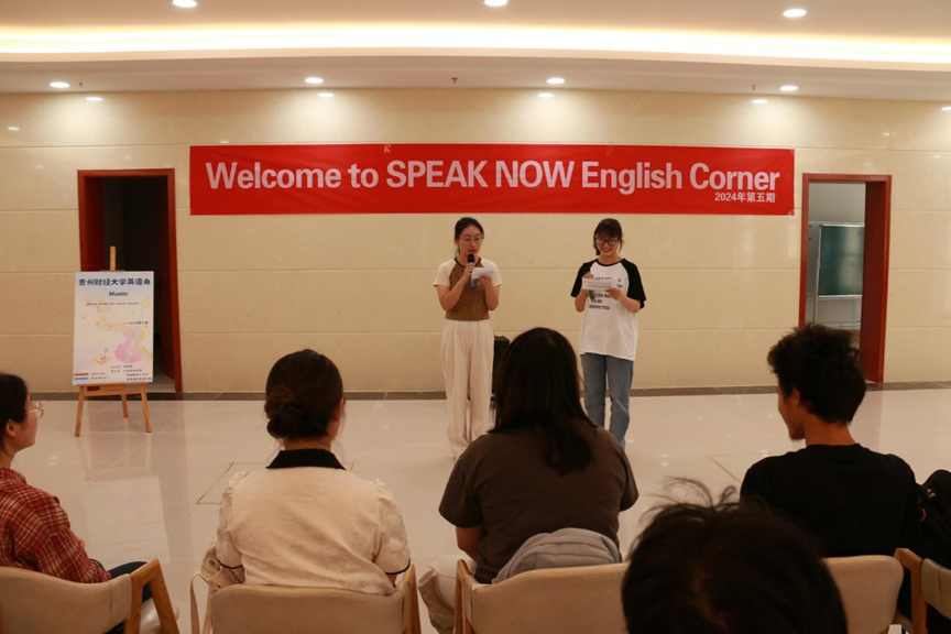 承办的2024年第五期“Speak Now”英语角在学生活动中心一楼大厅顺利开展。本期活动主题为“Music”。