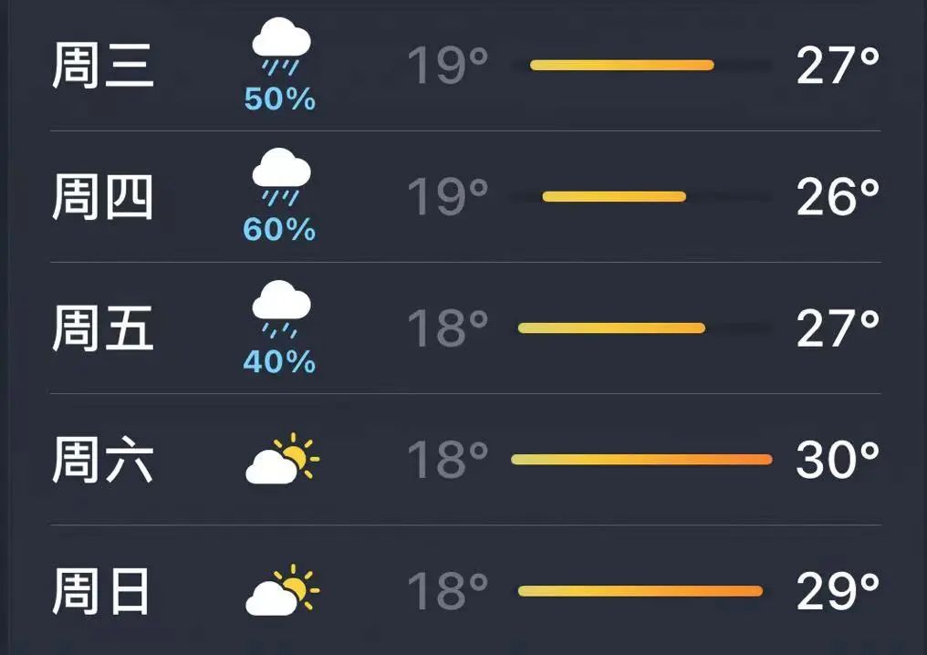 周三至周五贵阳天气均降雨,气温较稳定。周六至周日,天气晴朗,气温升高。先锋值班室提醒大家,周三至周五出门记得带伞,周六至周日好天气适合放松心情。你的快乐就是我们最大的心愿。
