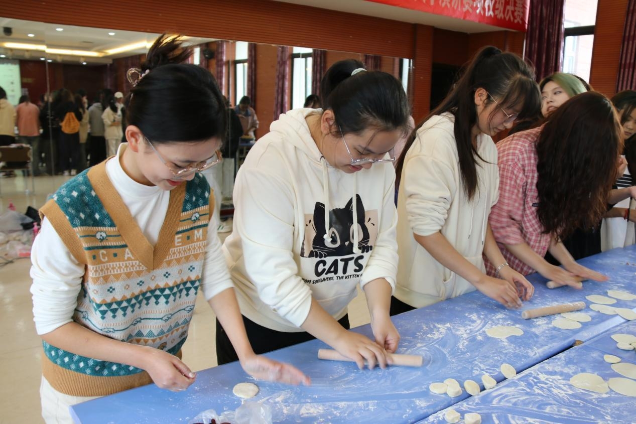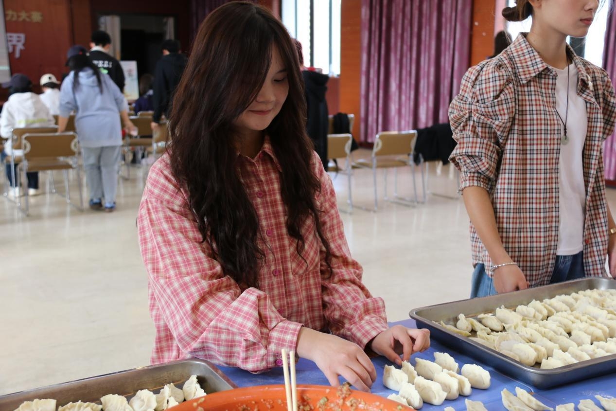 此外,同学们还体验了包饺子的活动,在楼管郑叔的指导帮助下,同学们分工合作,随着擀面杖的滚动和筷子搅拌肉馅的动作,一个个可爱的饺子整齐排列开来。