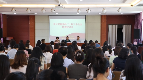 为深入学习贯彻党的二十届三中全会精神,推动全会精神在全体教职工中入脑入心践行。9月24日下午,在西区励学楼401会议室开展了党的二十届三中全会精神宣讲。院党委书记黄贵平为教职工作宣讲,全体教职工参加。