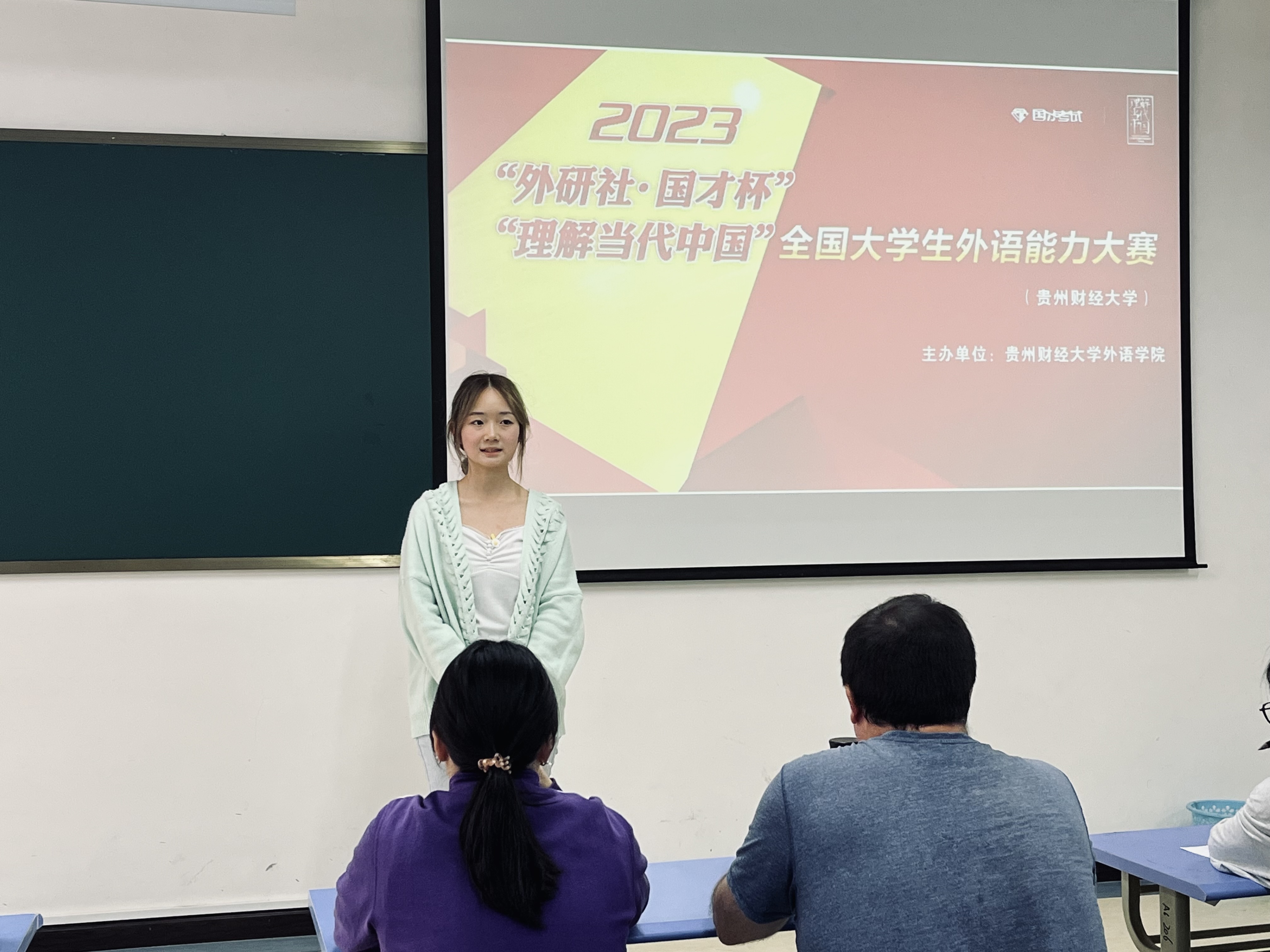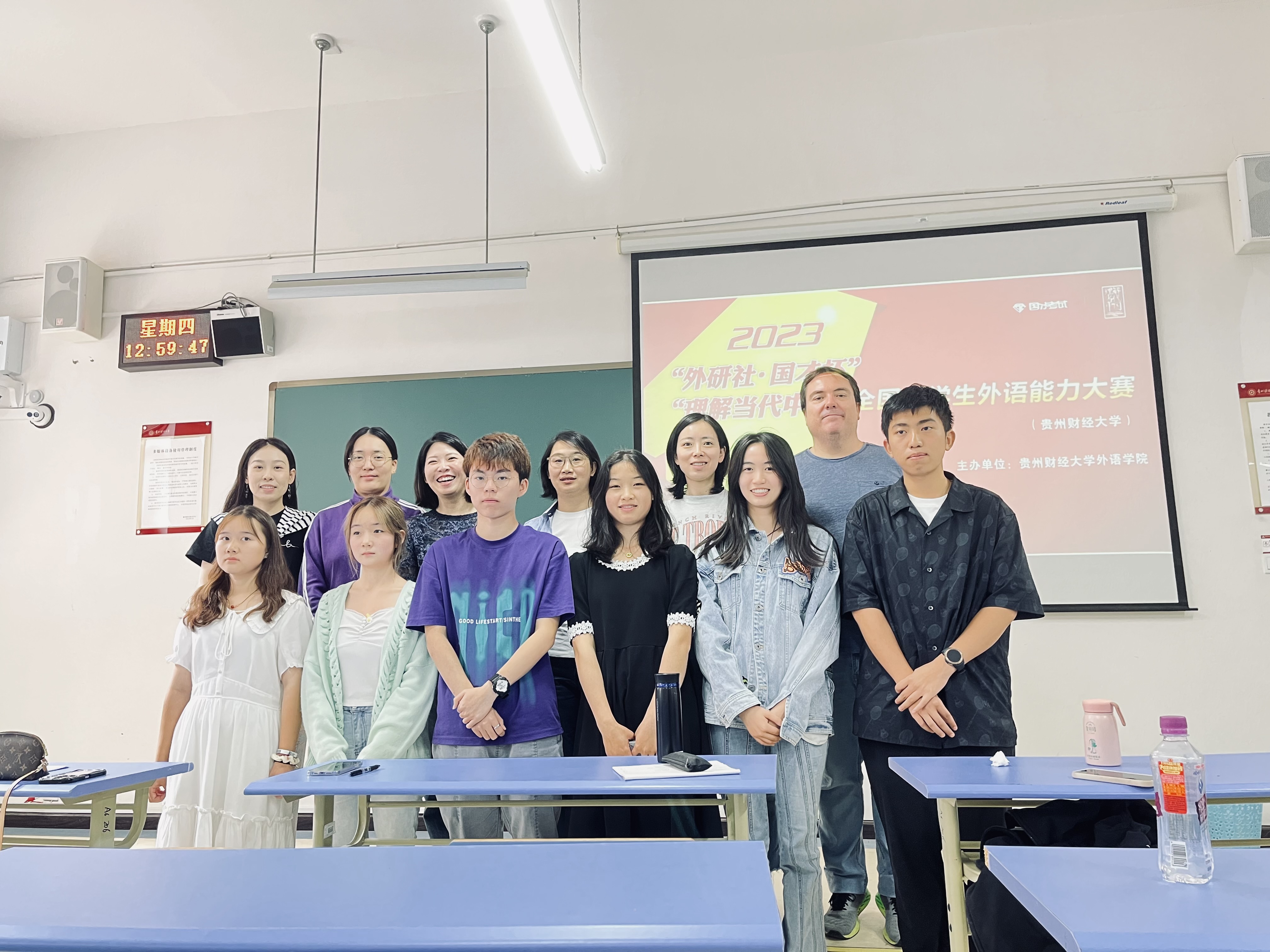 9月14日中午,在励学楼206教室举行了2023“外研社·国才杯”“理解当代中国”全国大学生外语能力大赛贵州财经大学西语组校赛,西语专业20级学生、22级学生参加了此次比赛,西语专业教师赵琳、赵智利、王亚娇莎、罗兰伊以及西班牙语专业外教Miguel担任此次比赛的评委,比赛由nba赔率