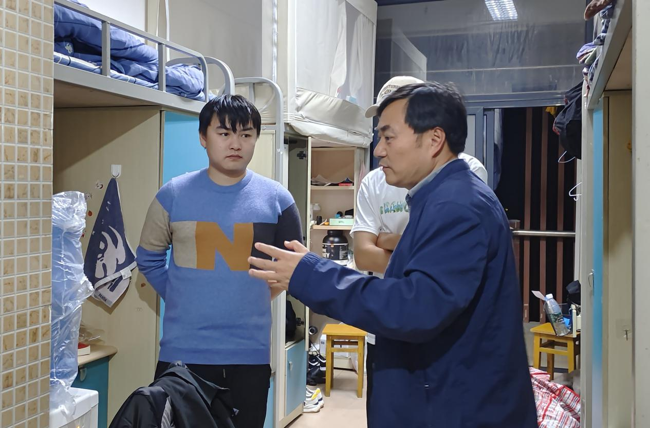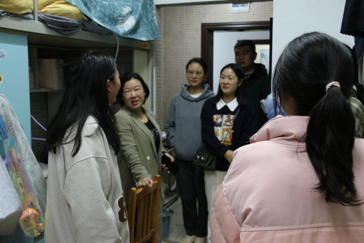 党委书记胡张林、党委副书记汪欢,带领辅导员田婷、申恒、刘鹏程到学生宿舍进行安全大检查。