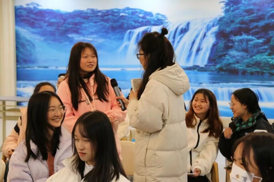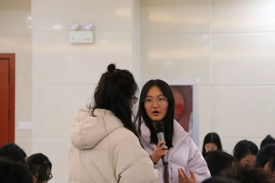 首先,主持人分享自己最近面临的压力,随后再通过“击鼓传花”小游戏让同学们分享一下自己所面临的压力。以花为载体,让温暖在同学们之间传递。