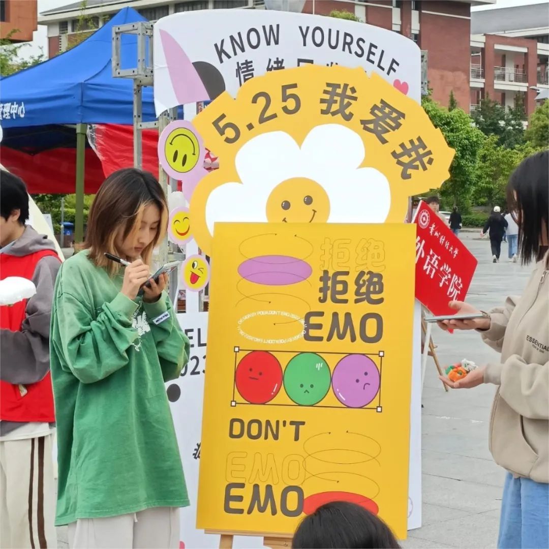 在五四广场开展了“保持微笑,拒绝emo”心理健康日主题活动。