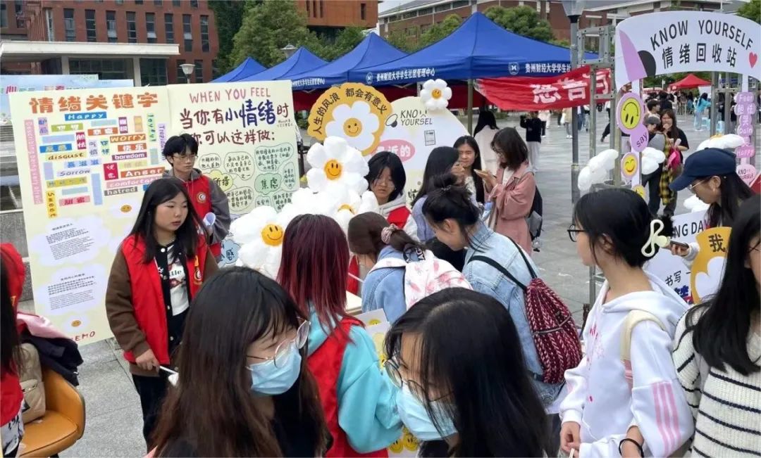 本次主题活动集活动性、趣味性、体验性于一体,共设置3个活动环节,分别是情绪回收站、鼓励的抱抱和心理测试,并精心设计拍照打卡点,供同学们拍照留念。活动现场气氛热烈,吸引了众多学生参与,处处欢声笑语,同学们在参与轻松欢乐的趣味活动中释放压力,放松心情。