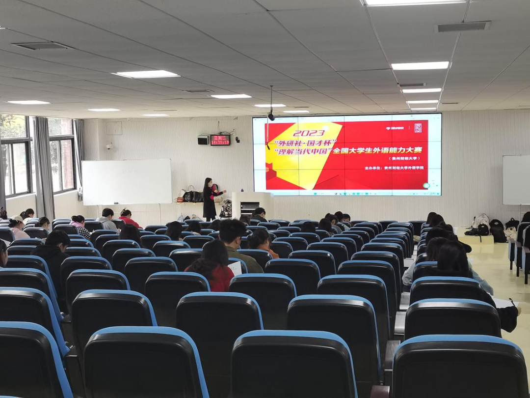 举行了2023 “外研社·国才杯”“理解当代中国”全国大学生外语能力大赛笔译、口译赛项贵州财经大学校级选拔赛。本次选拔共计83名英语相关专业本科生、MTI研究生参加。
