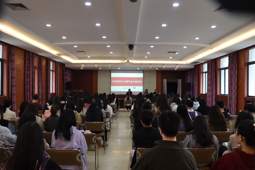 党委副书记汪欢和2023届全体毕业生参加座谈会。会议由辅导员申恒主持。