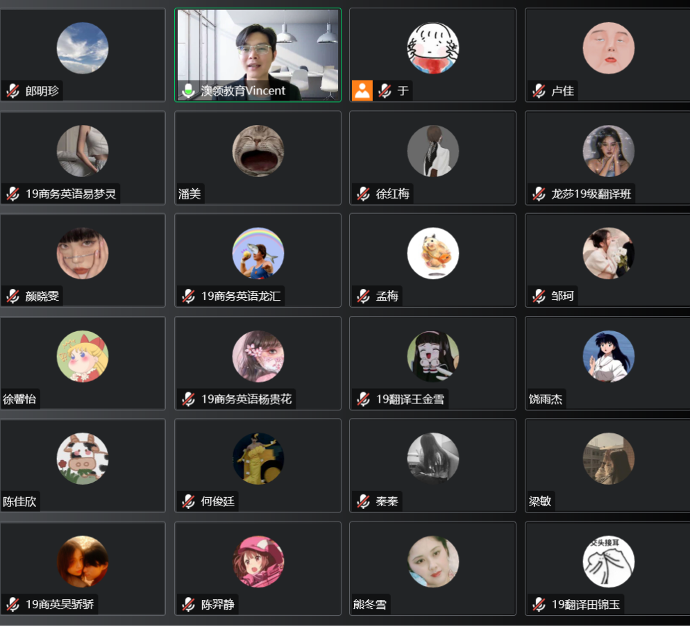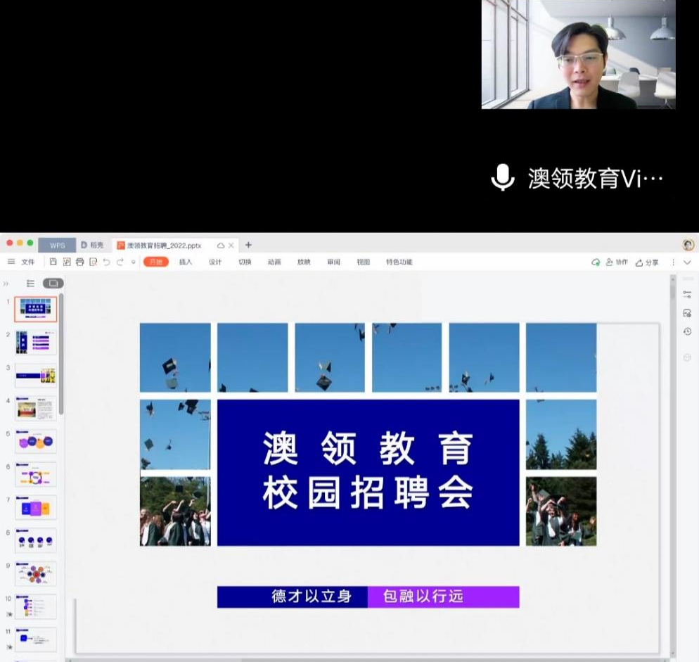 在腾讯会议平台为2023届毕业生举行线上就业宣讲会。本次宣讲会由辅导员于倩老师主持,2023届英语系毕业生参会。会议邀请到贵州澳领教育咨询有限公司进行线上宣讲。