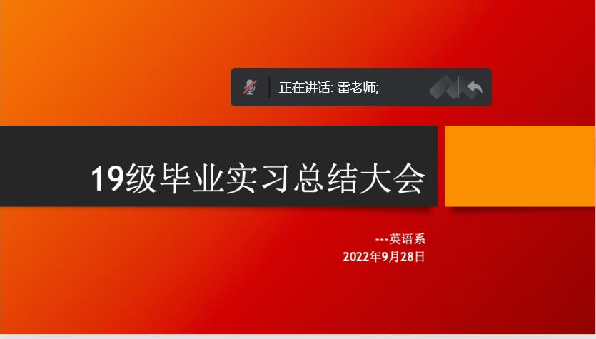 9月29日下午,2019级英语系专业召开了线上暑期专业实习总结大会。副院长雷晴岚和教务科老师张德艳出席会议,2019级英语系全体同学参会。会议由英语系系主任王景洁老师主持。