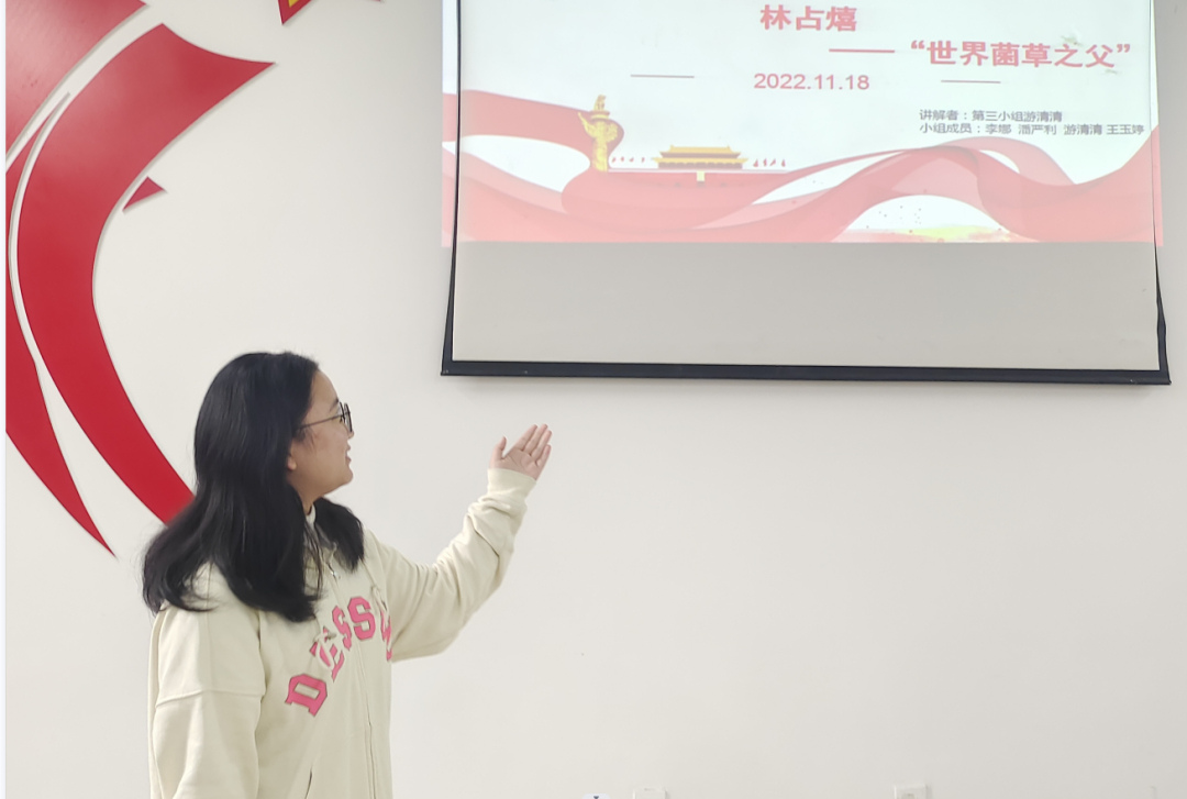 第一学习小组谭德林同志和第三学习小组游清清同志分别介绍了炼钢工人唐笑宇、“世界菌草之父”林占熺两位二十大代表的事迹,深入全面展示了他们在生产工作第一线、科研第一线贯彻落实习近平新时代中国特色社会主义思想,爱岗敬业、敢于担当、开拓创新、无私奉献的优秀品质和精神风范。