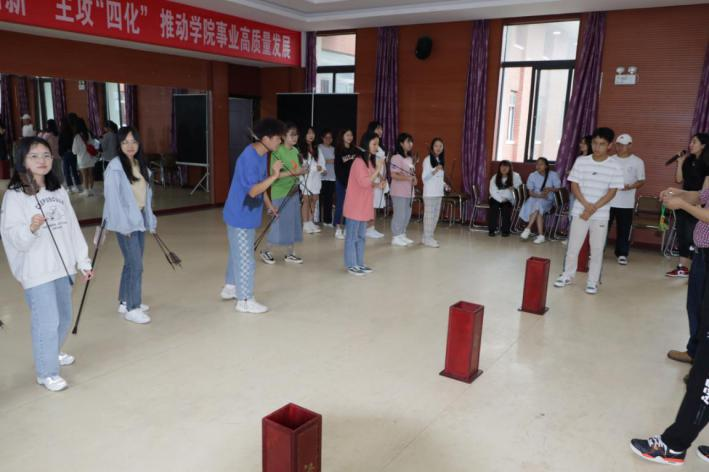 “民俗技艺,玩转端午”。射艺于法,礼制于心。投壶比赛现场角逐激烈,同学们都寻找角度,稳住心态,瞄准投射,活动现场加油声、叫好声、鼓掌声此起彼伏,气氛热烈浓厚,你一言我一语地支起了招。旁边还有投壶赢饮品的活动,大家欢声笑语,纷纷满载。