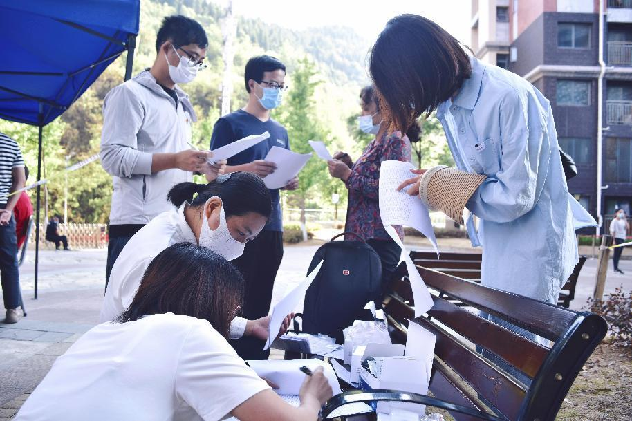 迅速反应,工作力量第一时间汇聚。“【紧急任务】根据全市统一安排,今天中午起将在公租房博士楼开展全员抗原检测,因人手不足,需紧急招募90名教职工作为志愿者,协助组织开展公租房博士楼检测。……”9月7日,党委组织部发出了一条志愿者服务招募公告。居住在学校花溪校区的教职工迅速响应,第一时间通过党组织报名180余人,防疫力量快速汇集,服务作用立即发挥。从招募、报名,到培训、上岗,只用了2个小时,就迅速形成作战力量。180余人分成13个志愿者小组,对博士楼、公租房等23栋建筑全覆盖开展抗原检测、核酸检测等服务。同时,在公租房物业中心成立临时指挥中心,组织人事部门靠前指挥,构建起上下联动、点面结合、高效有序的志愿服务体系。