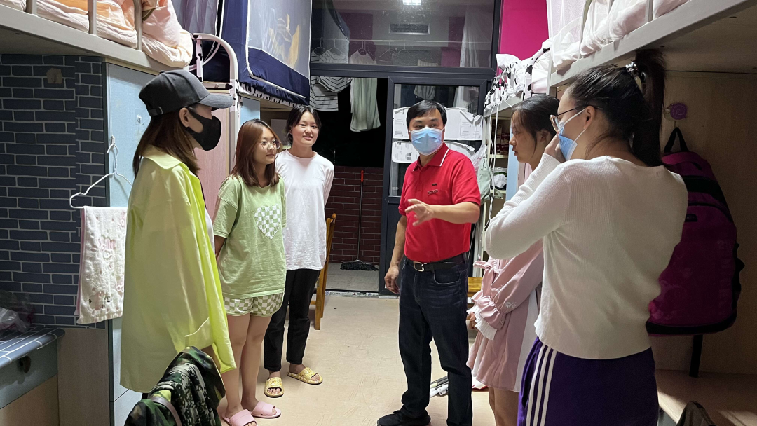 领导、辅导员一起走访学生寝室,关心班级学生的宿舍生活和学习情况。面对突发疫情,在得知许多后勤和物业工作人员因疫情封控无法返校返岗后,主动报名参与后勤志愿者服务。