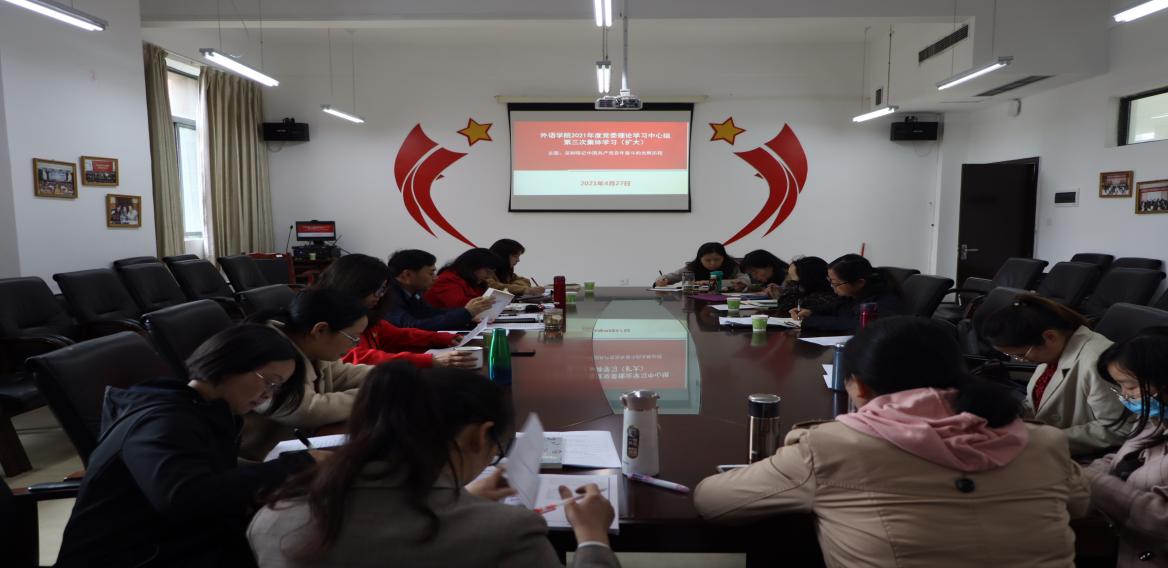 4月27日上午,院党委理论学习中心组聚焦新民主主义革命时期、社会主义革命和建设时期历史,在励学楼301会议室举行2021年度第三次集体学习暨深刻铭记中国共产党百年奋斗的光辉历程专题(扩大)研讨会。院领导胡张林、各党支部书记、科级干部、系部主任出席会议,院党委书记胡张林主持会议。