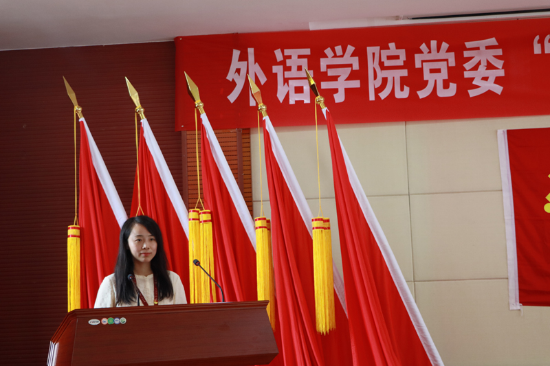 宣誓结束后,教师党员代表崔芳芹发言,表示要发挥党员先锋模范作用,坚持立德树人根本任务,为党育人为国育才,在平凡的工作中做出不平凡的业绩。学生党员代表赵姗发言,表示作为新时代的青年党员要坚定理想信念,肩负起伟大时代赋予的使命与担当,将个人理想融入到国家和民族的事业中去,走好新时代的长征路。