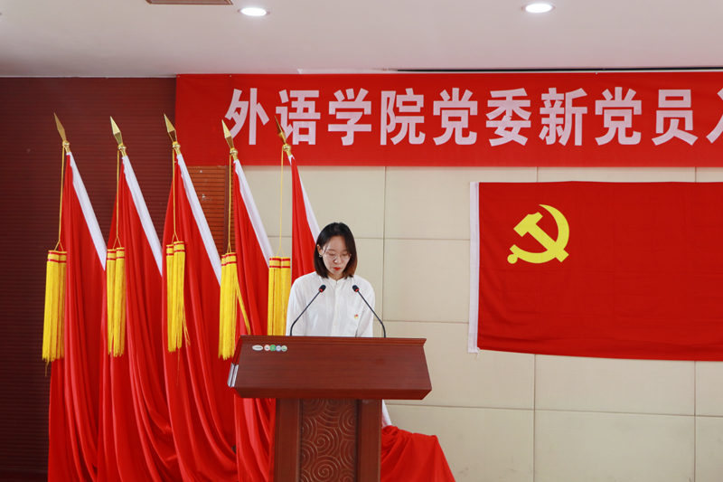 副科级专职组织员黄娜主持,研究生党支部书记康维领誓,“我志愿加入中国共产党,拥护党的纲领,遵守党的章程……”激昂的宣誓声铿锵有力、掷地有声。全体新党员,面对鲜红的党旗,高举右手,庄严宣誓,向组织表达坚定的政治信念和为党的事业努力奋斗的决心。宣誓结束后,研究生新党员李灵钗、本科生新党员陈星羽作为新党员代表发言,表示作为一名新党员,会牢记党的宗旨,在学习实践中不断成长、成熟起来,努力奋斗,为学校和社会的发展贡献自己的青春力量。