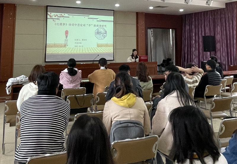 此次讲座共有三位主讲人,分别为2019级英语笔译专业的研究生王秋影,蔡国利和冯仕敏三位同学。其中,王秋影就“文化差异视角下影视作品中的不可译性研究——以《哪吒之魔童降世》为例”为题,选取了该电影中的经典台词对其翻译进行探讨,肯定其译好之处,亦对欠缺之处提出质疑并给出参考译文。接着蔡国利以“《红楼梦》诗词中否定词‘不’的英译研究”为题,采用语料库方式对否定词在红楼梦英译本中的案例进行分析和总结,提供了新的学术思路和研究方法。最后,冯仕敏就“英语学习中的石化现象——中介语”,由浅入深,介绍了影响二语学习过程中出现的石化现象及由此衍生出的中介语体系,并针对这一现象提出了相应的解决策略。
