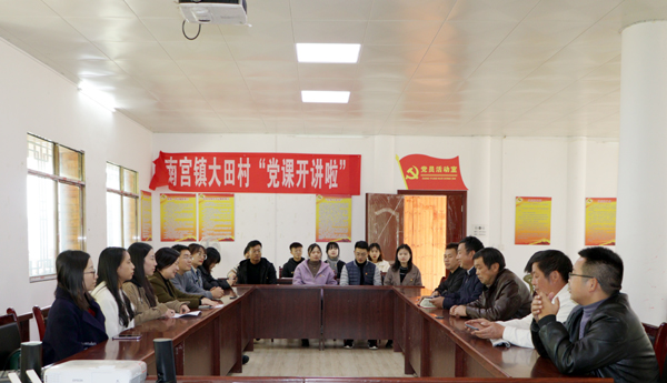 随后,汪欢副书记一行与大田村村支两委座谈交流。大田村支书杨秀光书记介绍了大田村的基本情况,大田村在脱贫后,发展的重心转移到了美丽乡村建设、村容整治和发展绿色产业上,依托大田村特有的自然条件和资源,通过生态种植金钩藤、蓝靛、生态大米等绿色产品,同时依托大田村的旅游资源发展生态旅游和红色旅游业。交流会上,双方就大田村如何发挥现有特色优势资源、如何共同为农民探索一条长期发展的增收之路进行讨论交流。