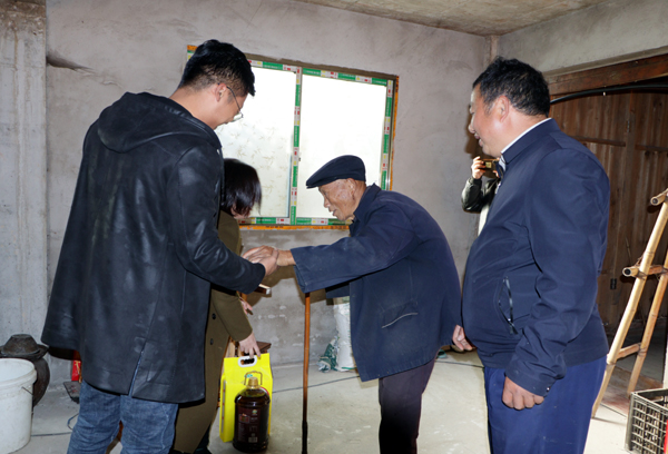 随后,杨秀光书记陪同汪欢副书记一行给大田村的困难户送温暖,开展走访慰问活动,与老人亲切交流,仔细询问他们的身体和生活状况,给老人们送上大米、食用油等慰问品和暖心的祝福。