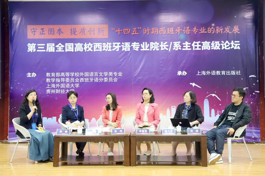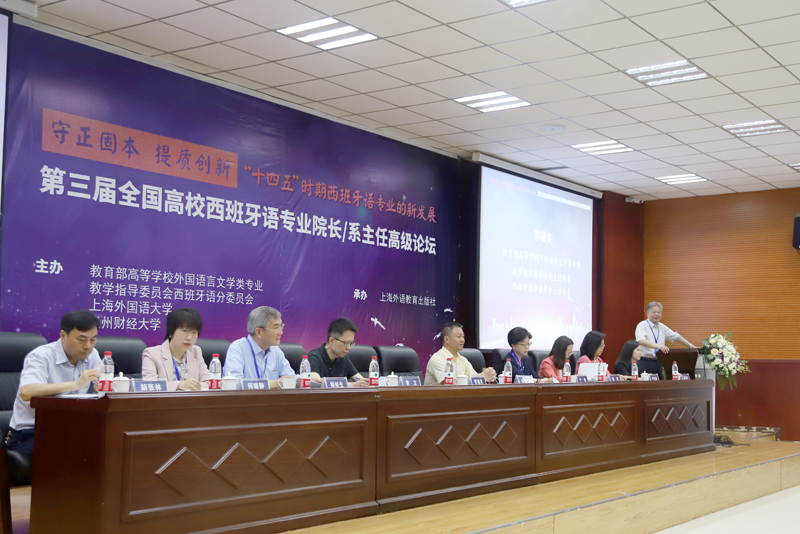 2021年6月11日,“第三届全国西班牙语专业院长/系主任高级论坛”在我校成功召开。本次论坛由教育部高等学校外国语言文学类专业教学指导委员会西班牙语专业教学指导分委员会、上海外国语大学、贵州财经大学和上海外语教育出版社联袂举办。来自北京外国语大学、上海外国语大学、北京大学、复旦大学、西安外国语大学、南京大学、浙江大学、大连外国语大学、四川外国语大学等全国60所院校的80多名西班牙语院长、系主任参加了会议,并以专题讲座、圆桌论坛、分组讨论和大会交流的方式围绕“十四五时期西班牙语专业的新发展”这一会议主题就“当前高校西班牙语专业建设的重点”、、“新文科背景下西班牙语专业发展与创新”、“西班牙语专业一流专业建设和一流课程建设”、“新时代课程思政与西语专业教育的融合”与“西语专业教学的新思路、新模式、新举措”等不同方向进行了充分而深入的探讨。