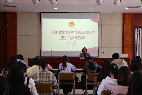 汪欢在课上向团员们解释了中华民族共同体意识的重要性,它是民族团结之本,是国家认同、民族交融的情感纽带,是祖国统一、民族团结的思想基石,是中华民族绵延不衰、永续发展的力量源泉。当代青年在增强历史使命感的同时,要正确处理“多元”和“一体”的关系,牢固树立正确的国家观、民族观,加强“五个认同”和“四个自信”,促进各民族像石榴籽一样紧密团结。最终构建起维护国家统一的思想长城,为实现民族复兴凝聚青春力量。