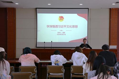 团委田婷老师阐述了习近平文化思想是马克思主义思想精髓同中华优秀传统文化全面贯通的理论结晶,是我们党理论创新的又一重要里程碑。学深悟透习近平文化思想,可以更加深刻领悟习近平新时代中国特色社会主义思想的文化内核,更加全面理解和把握新时代宣传思想文化工作的职责使命,更高举起引领强国建设、民族复兴的精神旗帜,更好建设社会主义文化强国、铸就中华文化新辉煌。