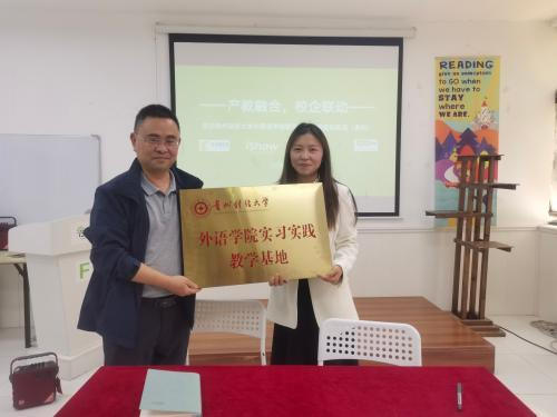 党委书记黄贵平、副院长唐丽君、英语系副主任李丽平、王景洁,以及爱秀教育科技有限公司校区负责人曾宪梅、教学主管蒋欣艳等共同出席了挂牌仪式。