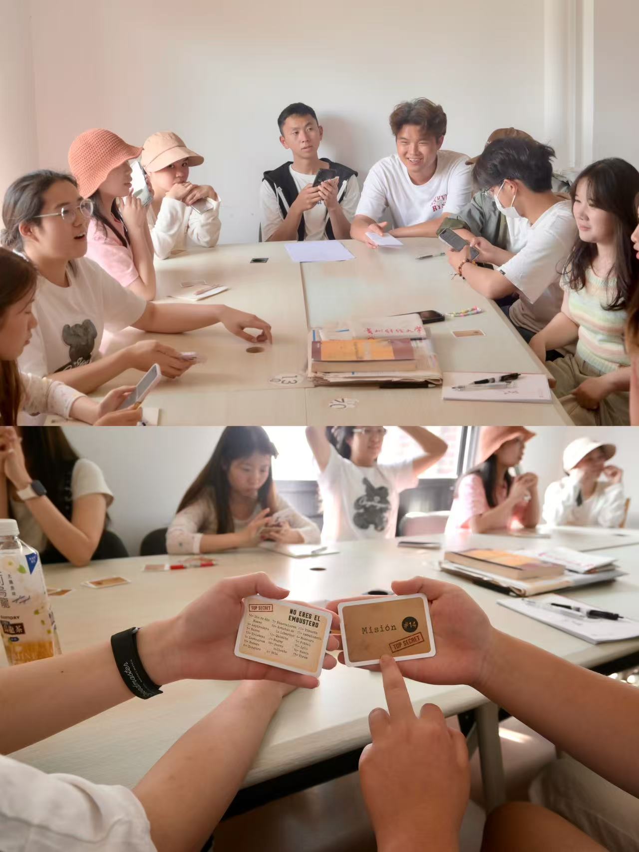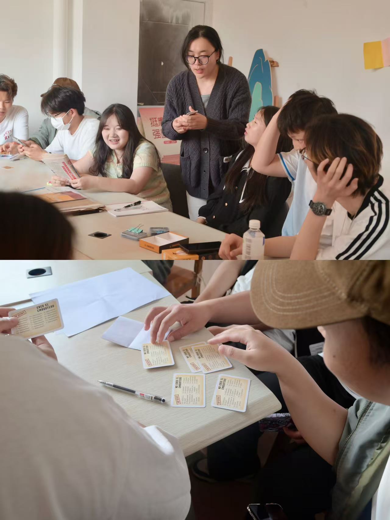 活动聚焦“游戏化教学+跨年级互动+社区场景实践”三大维度,通过“你画我猜”创意演绎、“谁是说谎者”逻辑风暴等互动游戏,激活词汇生命力;通过高年级学生示范西班牙语词汇重音、情感和语调,低年级学生模仿、录音对比等方式,培养语感,让学生愿说会说能说,促进高低年级学生互动;通过“你有我无”的卡牌对战游戏,构建社区场景实践模式。