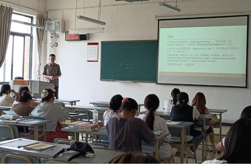 英语系教工党支部书记罗金博士担任值班员,聚焦英语专业四级考试,为同学们作专题辅导。