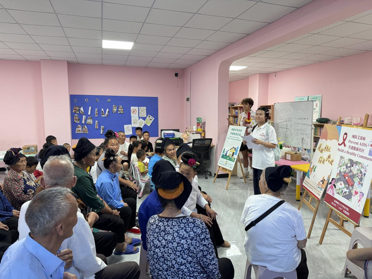在社区活动中心,队员们开展了集中宣讲会,摆放宣传资料,为往来居民现场讲解艾滋病传播途径、预防措施等核心知识。面对居民的提问,队员们耐心解答,用平实的语言帮助大家消除认知误区,加深对防艾重要性的理解。