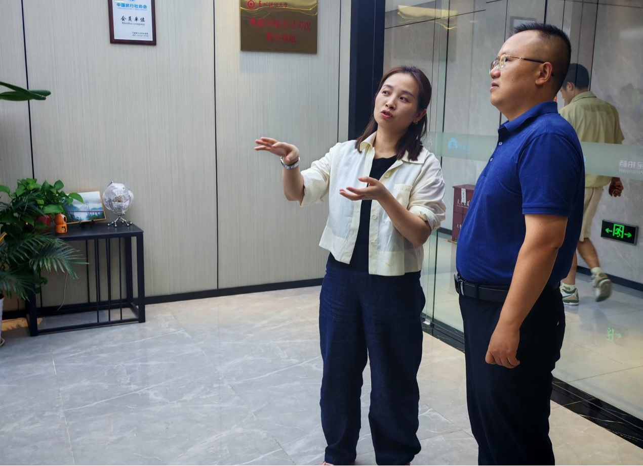 党委正处级专职组织员王钊、英语系教师姚倩和丁路一行赴航海家国际旅游服务有限公司走访调研,深入了解学生岗位实习情况,并与企业负责人黄康乐总经理和欧阳海芳总经理就深化校企合作进行交流。
