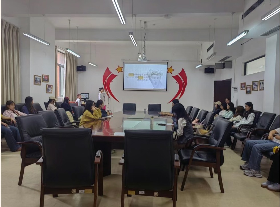 在励学楼301会议室成功举办了第五期“读书沙龙”活动。本期活动聚焦于“西方翻译理论经典著作导读”,吸引了来自翻译专业的师生共计20余人参与。活动重点推介了巴斯奈特的《翻译研究》这部西方翻译理论经典著作。