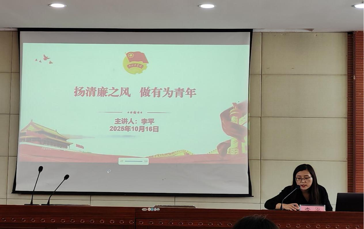 党委委员、纪委书记李平做了关于“扬清廉之风 做有为青年”的专题讲座。李平书记带领大家一起回顾了当的“三大纪律八项注意”的相关规定精神内容,要求大家牢固树立廉洁底线。李平老师通过教育警示片《种子》给大家予以教育警示,勿以权小而滥用,不踩线,不越界,营造“不敢腐,不能腐,不想腐”的廉洁氛围。李平书记最后指出,青年大学生要坚持继承和发扬中华优秀传统清廉美德,遵守学术规范,学术诚信,不作弊不抄袭,牢固树立正确的学风,做新时代的有为青年。