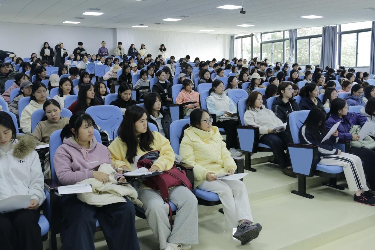 大学外语第二教学部肖菊教授、系部副主任崔芳芹老师担任主讲人。培训聚焦四六级考试核心痛点,精准划分写作、听力、阅读、翻译四个专题,通过真题解析、技巧拆解、实战演练等方式,系统梳理各题型答题思路,助力同学们突破学习瓶颈。两位教师结合多年教学经验,将复杂知识点通俗化、零散技巧体系化,内容丰富且实用性极强,有效填补了同学们备考中的知识空白。