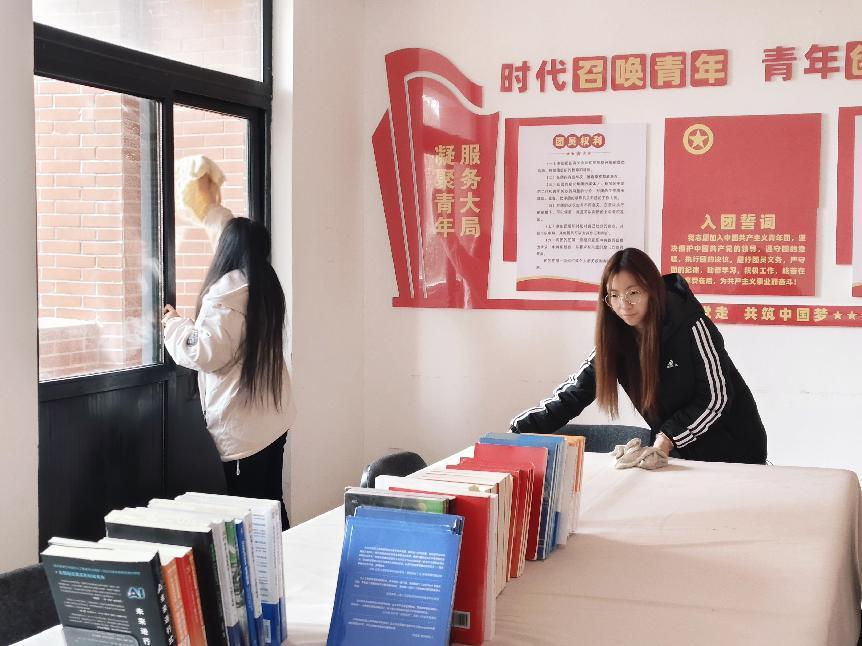 第一分队聚焦校园环境优化,在玉兰苑一栋积极开展志愿服务活动。党员同志们迅速投入到党团活动室的整理工作中,他们细致地分类整理书籍资料,认真清扫地面灰尘,为同学们精心打造了一个整洁有序、温馨舒适的学习交流空间。随后,大家转战宿舍楼门口及周边公共区域,手持清洁工具,认真清扫落叶和杂物,不放过任何一个卫生死角。尽管寒风凛冽,但党员们热情高涨,干劲十足,用实际行动诠释着奉献精神,充分展现了新时代党员踏实肯干、服务同学的良好形象,为校园增添了一抹温暖的色彩。