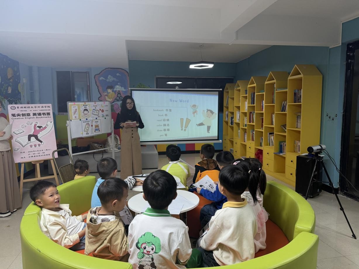 “贵财有爱‘语’你同行”第58期志愿者邓锐琦、胡梦颖、侯业璇、黄可盈走进贵州财经大学西校区公租房社区A3活动室,以Creative English Bookmarks为主题,为小朋友带来一场动手又动口的趣味英语手工课堂。志愿者们把英语学习和创意绘画结合,让孩子们在制作书签的过程中,感受语言魅力,收获满满能量与知识。