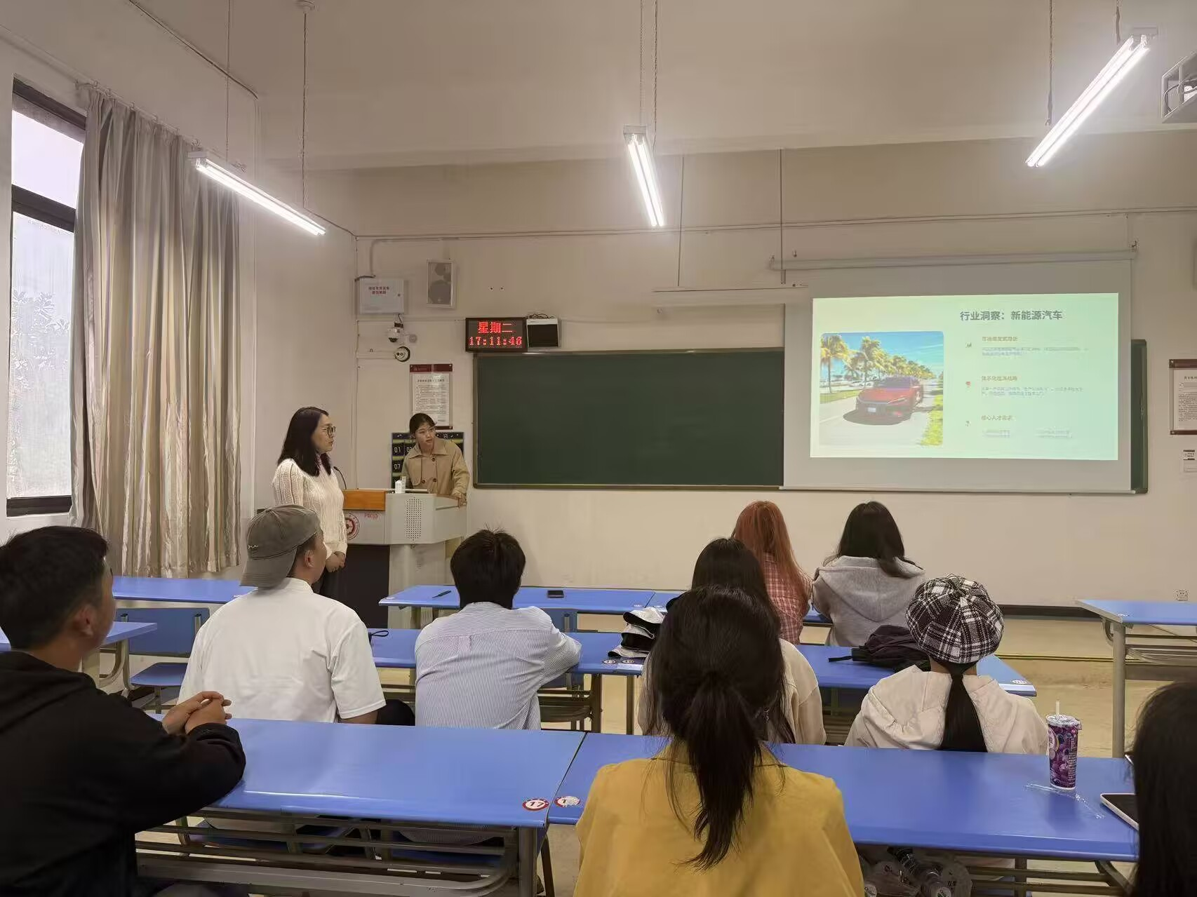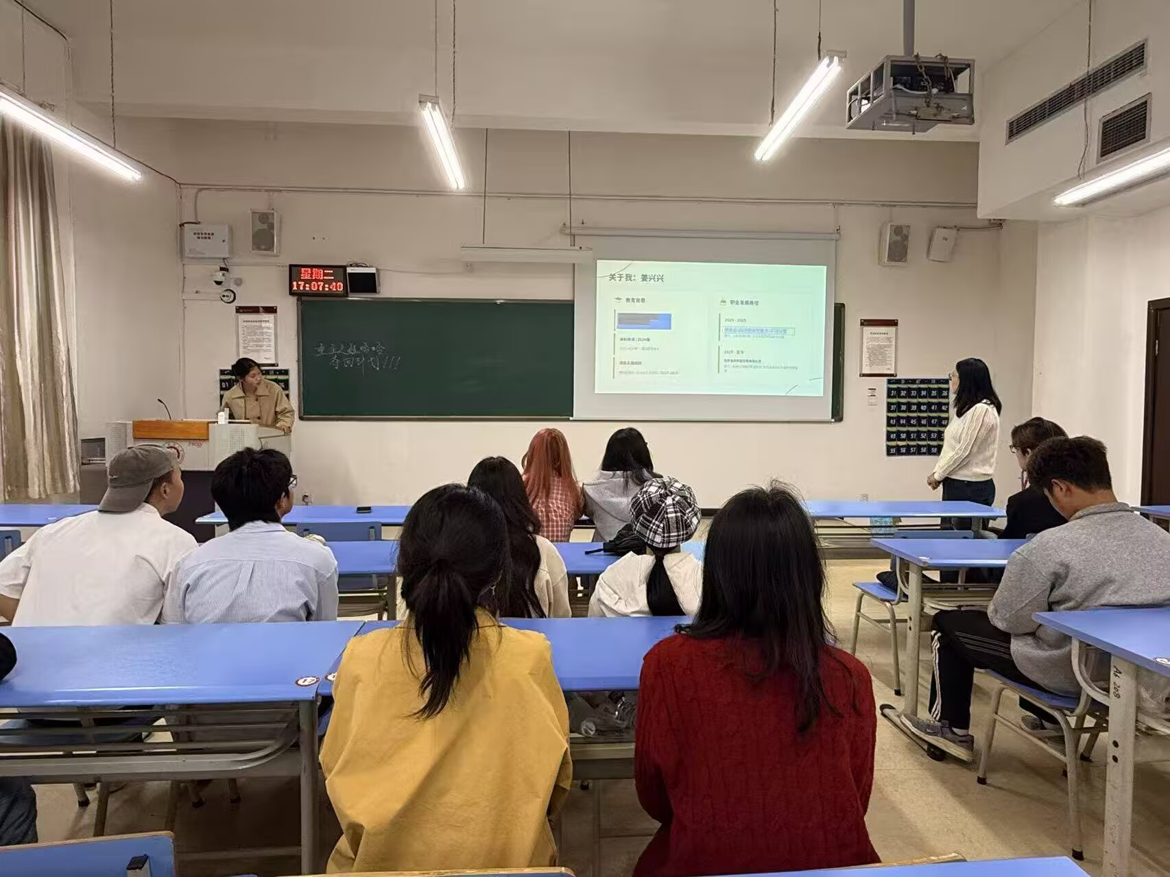 分享会上,姜兴兴学姐以轻松亲切的语气开场,首先向同学们介绍了自己目前的工作岗位与职业发展情况,结合从校园学习到职场过渡的真实经历,分享了求职准备、面试闯关、入职适应的全过程感悟,让同学们对职场环境与职业发展路径有了更直观、清晰的认知。