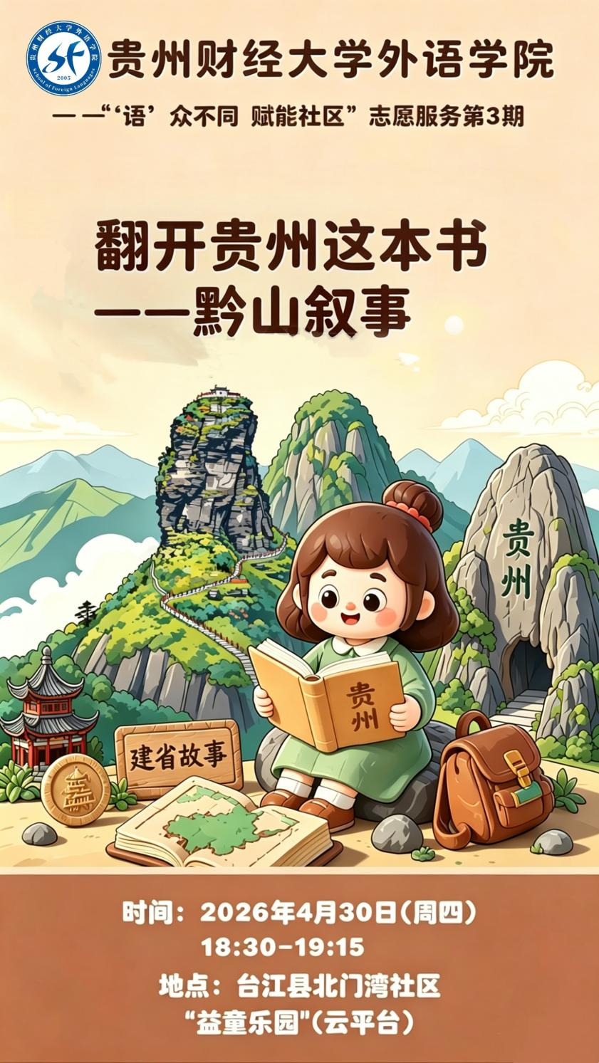 穿越六百多年,我们不只是在地图上找到贵州,更是要用世界听得懂的话,讲出贵州名字里的传奇、石头里的时光。希望在这场云端旅行中,每一个小朋友都能把家乡的山水装进心里,也装进口中。做多彩贵州的小小代言人,用双语告诉世界:看,这就是我出生的地方,一个被水雕刻、被山守护、被故事填满的家乡。