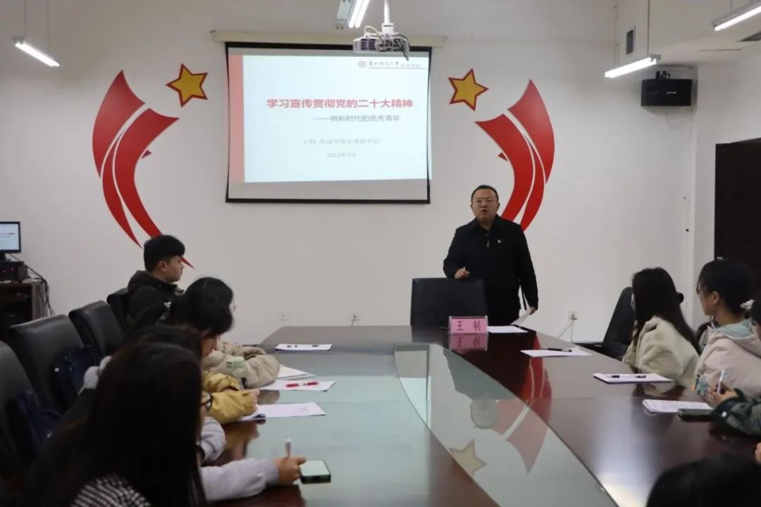 开班仪式结束后,王钊副书记以《学习宣传贯彻党的二十大精神,争做新时代优秀青年》为主题为学员们讲授了第一课。王钊副书记带领大家一起学习了党的二十大精神,并围绕“什么是入党动机”“为什么要端正入党动机”“如何端正入党动机”“怎样把动机转化为行动”四个方面展开阐述。