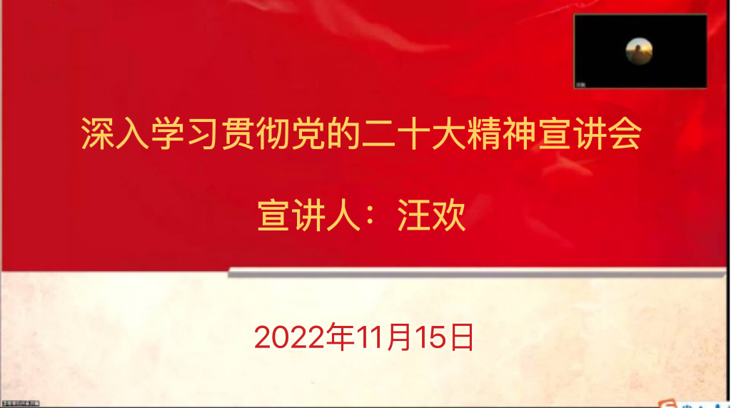 汪欢从深刻领会和把握党的二十大的重大意义、党的二十大的主题以及主要内容的精神方面开展宣讲。