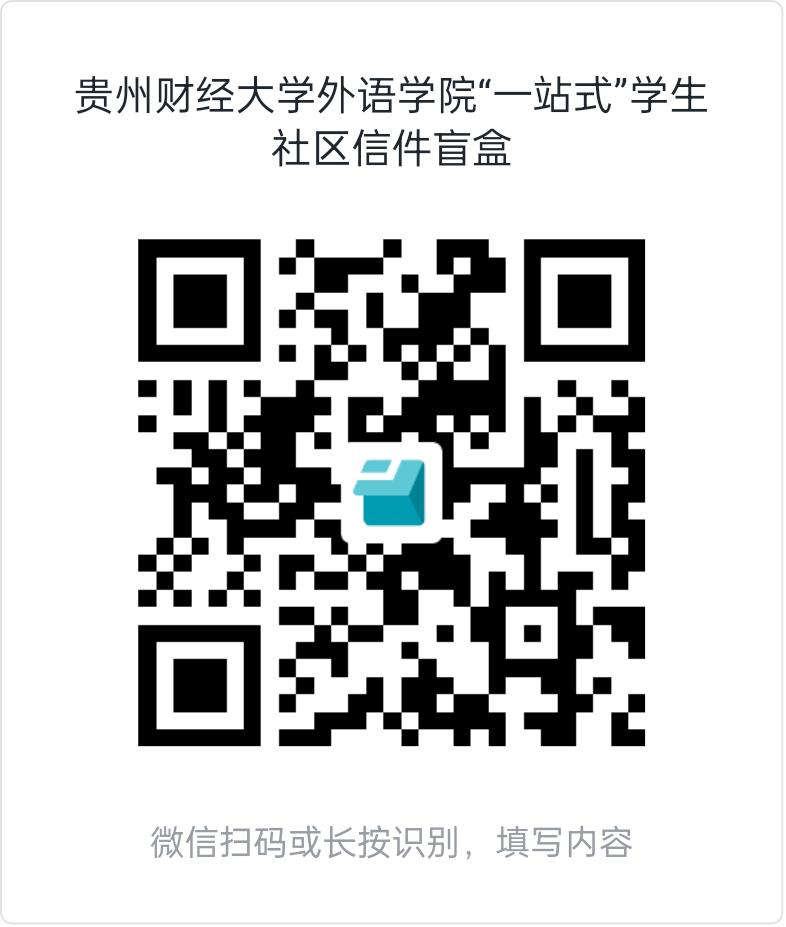 “一站式”学生社区线上“信件盲盒”持续进行中!同学们可以通过扫描下方二维码,写下自己在专四题型中最薄弱的板块,以及学习、生活等方面的困惑难题,也可写下对社区活动、社区建设的意见建议,还可以积极申报活动主题哦。先锋值班室的值班员将会定期回信。欢迎大家和“小外”一起为建设团结、有爱、温馨、向上的“一站式”学生社区助力!