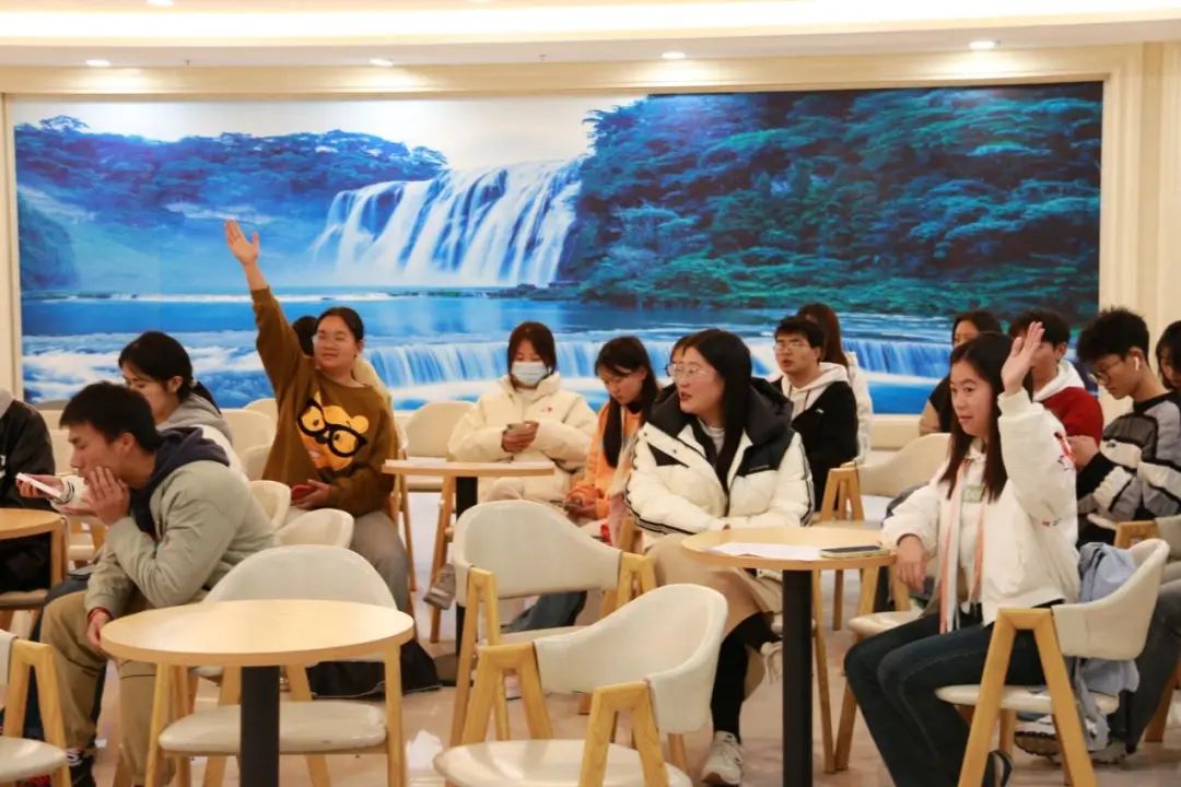 在游戏环节,中华美食知识竞答赛以两两一组,一人描述图片一人猜美食名称,答对多者胜的形式进行;而美食名称接龙则是邀请七名同学用英文描述美食名称,要求不能与对手说过的重复,经过几轮激烈的比拼,最终决出了胜负。